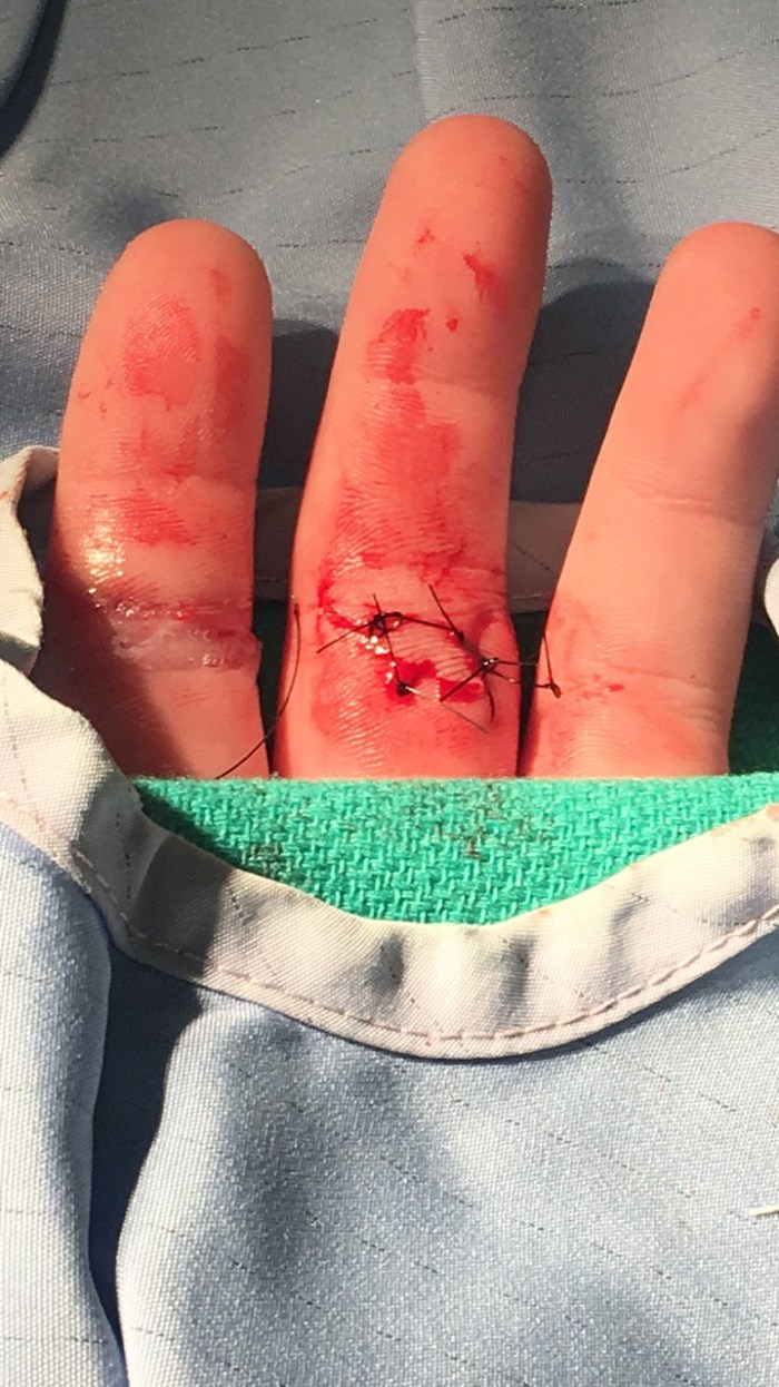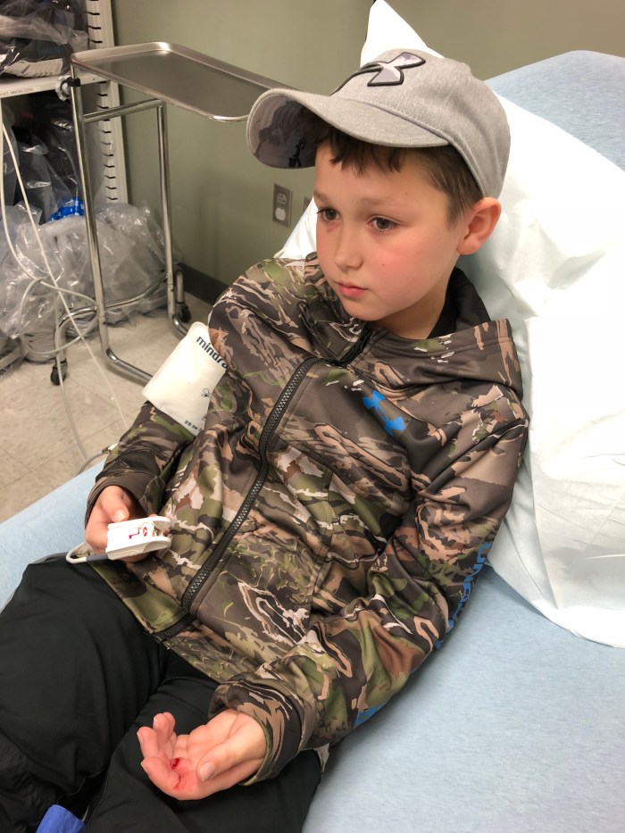 Well Matthew got stitches for the first time in his life tonight. Thankfully my mom was working the ER to help put him at easy. He was opening something with the pocket knife he got from Brad for Christmas and sliced his fingers right open. Look at that sweet face, he was tough through the whole thing, but a little nervous.