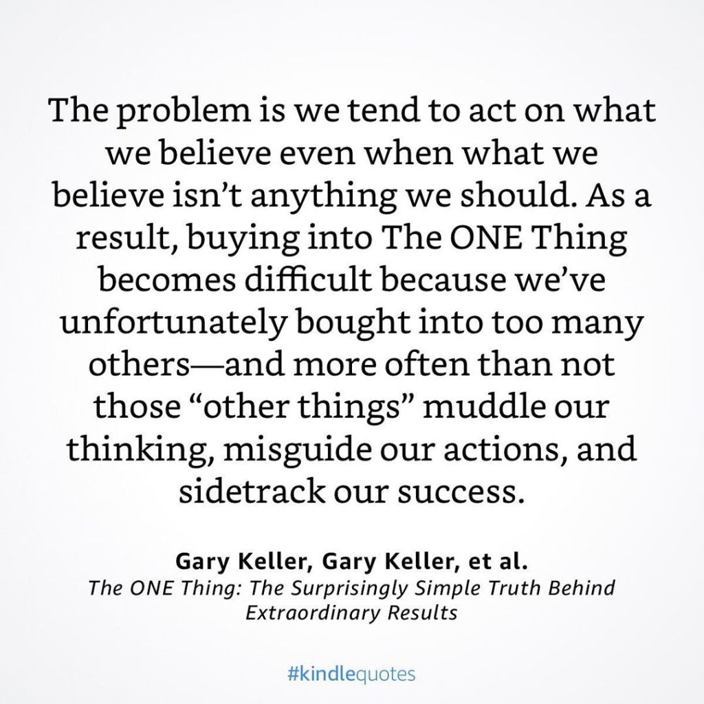 To be successful we must learn to simplify and narrow our focus. This is a great book talking about picking One Thing. As someone who started out in the network marketing world with several different ventures, sometimes all at once…I learned this the hard way. This is great business advice, but I think it fits in all areas of life.